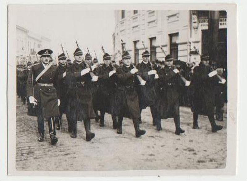 In imagine, un cadru surprins pe pe 24 ianuarie 1935, in timp ce trupele defilau prin oras. Este greu de spus in ce loc a fost luata imaginea, cladirile care se vad in imagini fiind, mai mult ca sigur, demolate intre timp.