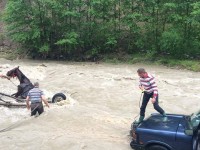 Doi cetateni care au incercat sa treaca prin apa Slanicului cu caruta trasa de doi cai au fost cat pe ce sa moara inecati, din cauza curentului puternic al apei.