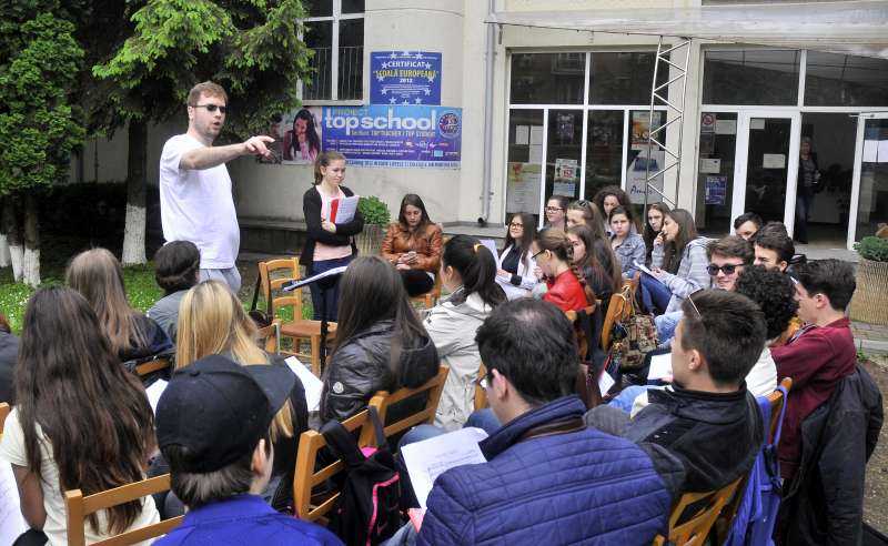 Acestia, impreuna cu profesorul lor Ionut Vilcu, au profitat de soarele cald al diminetii si au iesit in fata liceului unde s-a desfasurat ora de Cor. Placut surprinsi de acest adaos muzical adus glasului cacofonic al traficului urban, trecatorii s-au oprit pentru o clipa din graba lor ca sa asculte piesele corale interpretate de catre tinerii muzicieni.