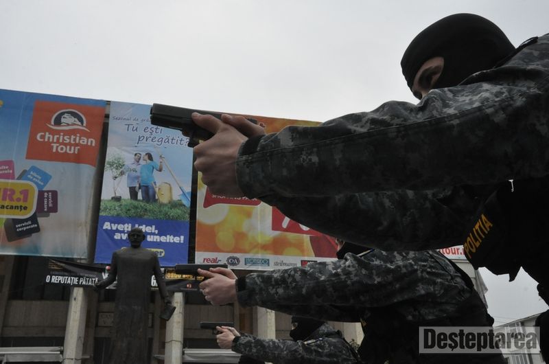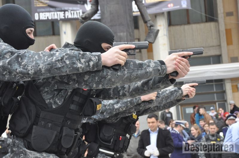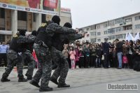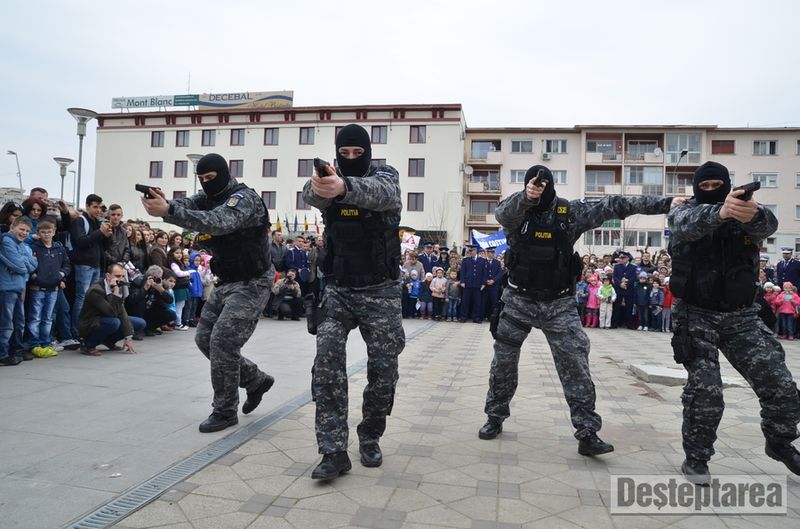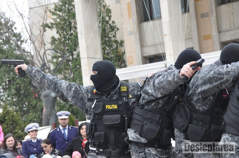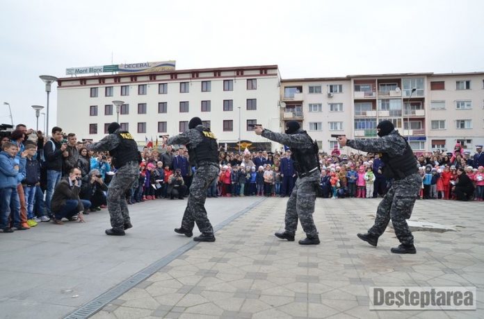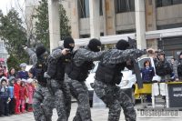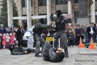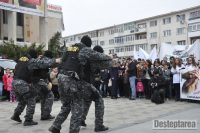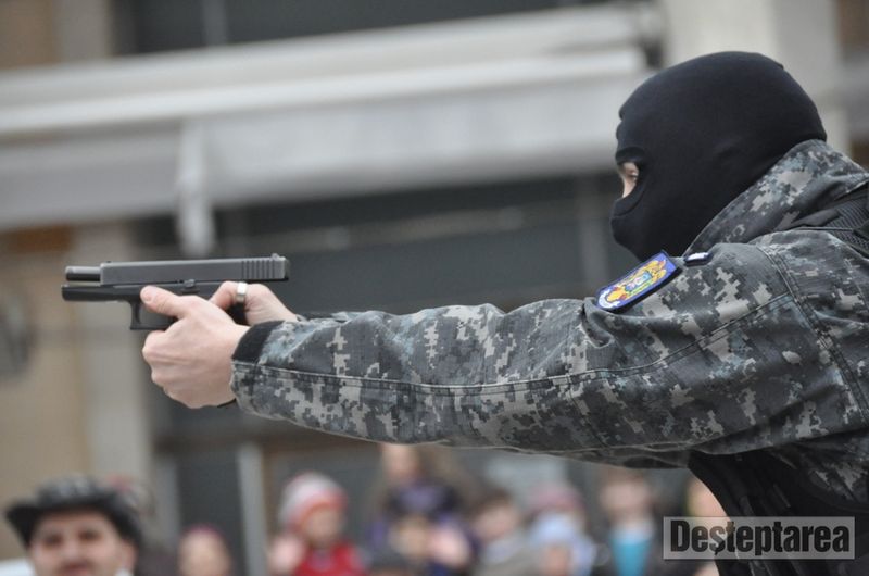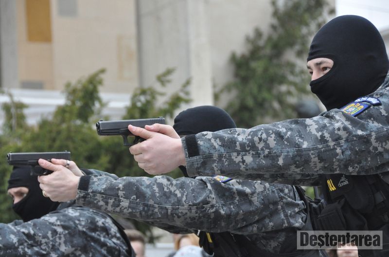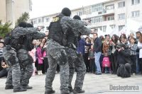 Luptătorii din cadrul Serviciului pentru Acțiuni Speciale au prezentat un exercițiu de antrenament specific activității de intervenție și echipamentele speciale necesare executării misiunilor încredințate.