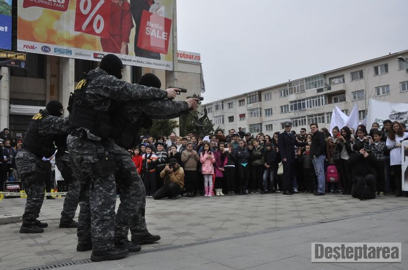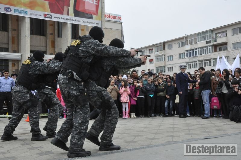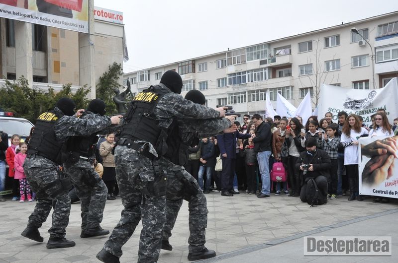 Activitatea a continuat cu un spectacol artistic realizat de elevi și polițiști la finalul căruia au fost înmânate diplome și premii școlilor participante. Pe platoul din fața Casei de Cultură a fost prezentat, persoanelor interesate, un detașament de tehnică al Poliției băcăuane, format din autospecială de intervenție, laborator criminalistic, autospecială rutieră dotată cu aparat de măsurare a vitezei.