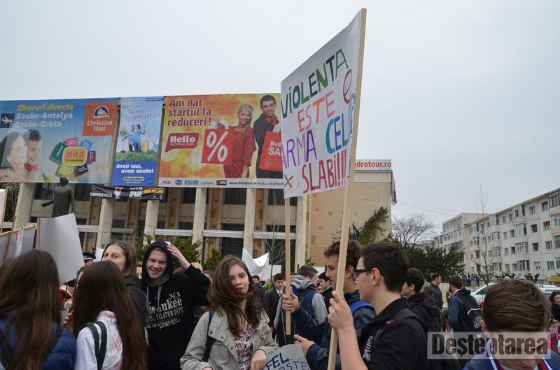 Peste 1000 de elevi din școlile băcăuane au participat începând cu ora 13.00 la marșul nonviolenței, derulat sub deviza „Comunitate în siguranță. Împreună suntem mai buni!”, ce s-a desfășurat pe traseul Parcul Trandafirilor – Casa de cultură a sindicatelor “Vasile Alecsandri” din Bacău.
