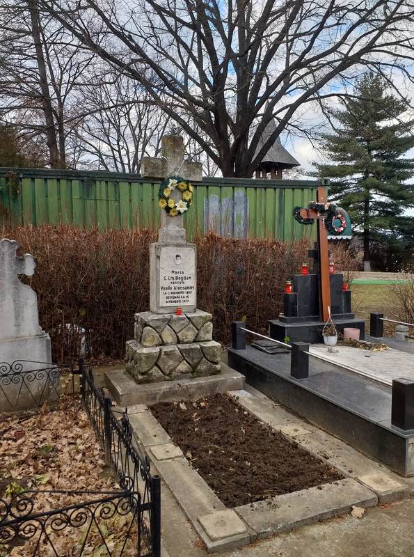 Membrii Cenaclului literar „George Călinescu” și ai Subfilialei Onești a Asociaţiei Naţionale Cultul Eroilor „Regina Maria” au decis, la finele anului trecut, să așeze pe crucea mormântului din imediata vecinătate a Bisericii din Borzești al Mariei Bogdan, fiica poetului Vasile Alecsandri, o fotografie care să-i aducă identitatea mai aproape de noi.