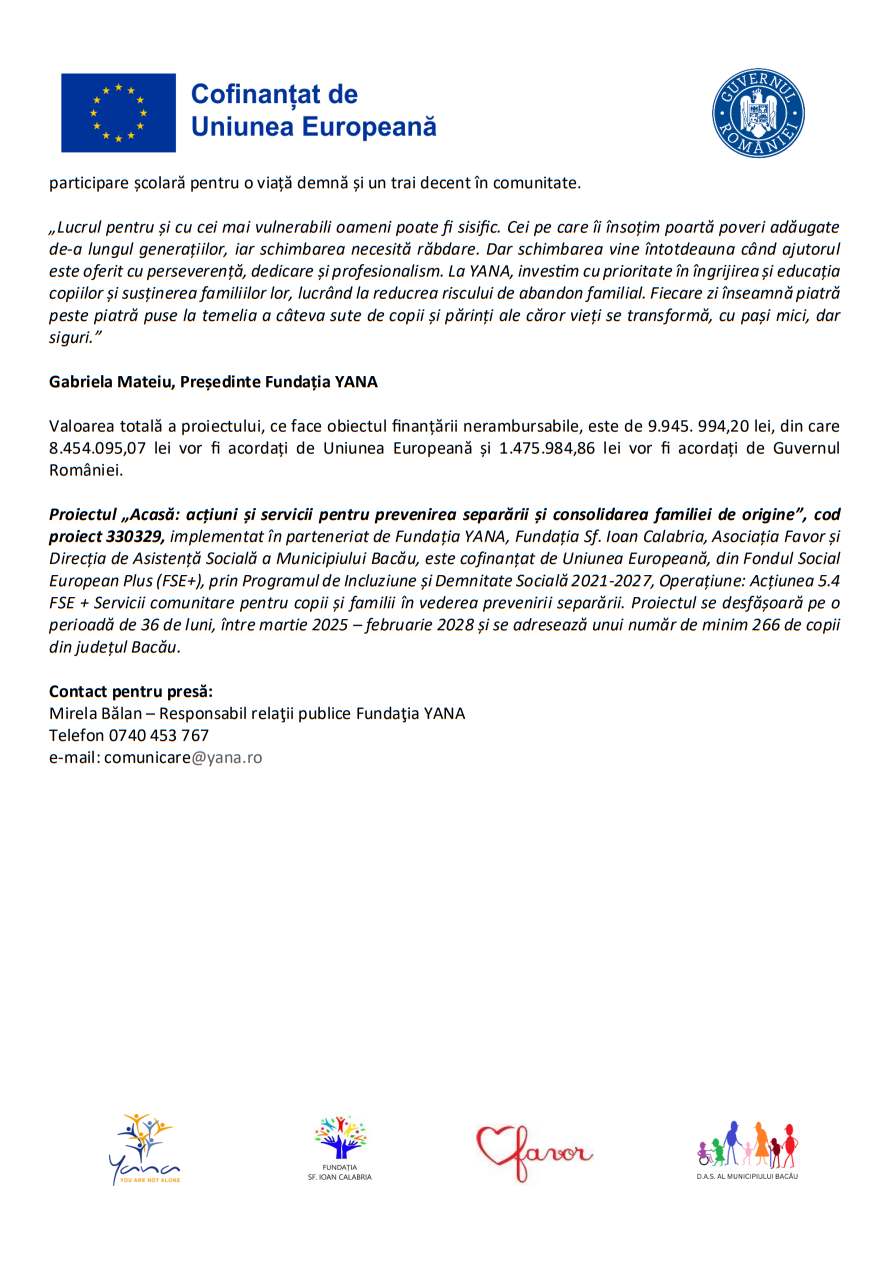 Comunicat de presăFundația YANA anunță lansarea proiectului „Acasă” Comunicat de presa13 martie 2025AcțiuneFacebookTwitterWhatsAppTelegramVK AcțiuneFacebookTwitterWhatsAppTelegramVK Un mister din 1973… în Steagul roșuFotbalul băcăuan la 360 de gradeDepopularea continuă dar septembrie aduce o surpriză demograficăCum să ai grijă corect de parfumul tăuHandbal juvenil: Prima ediție a Memorialului „Marcel Păunică”Polițiștii băcăuani, în sprijinul comunității: recomandări pentru sărbători în siguranțăIntervenție laparoscopică reușită pentru tratarea infertilității cauzate de varicocel40 de kilograme de articole pirotehnice, deținute ilegal, descoperite de polițiștii băcăuaniCând se organizează Alaiul Datinilor și Obiceiurilor de Iarnă în BacăuTrei cazuri noi de gripă și peste 1.500 de infecții respiratorii în județul BacăuConcursul Național Interdisciplinar „Vrănceanu – Procopiu” Bacău, ediția a XXIV-a, 2025Cum transformă perdelele atmosfera din orice locuință