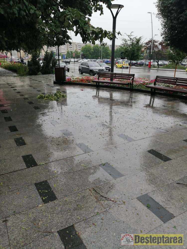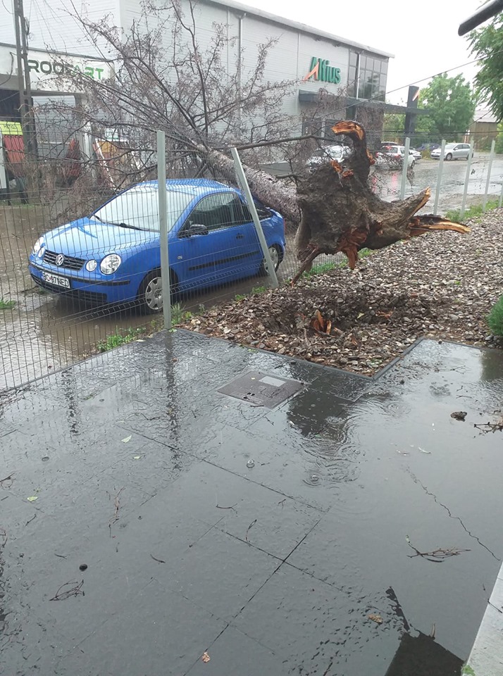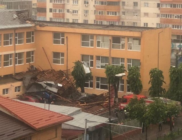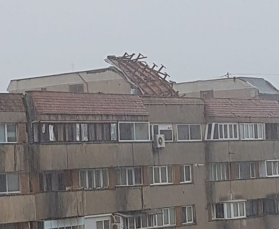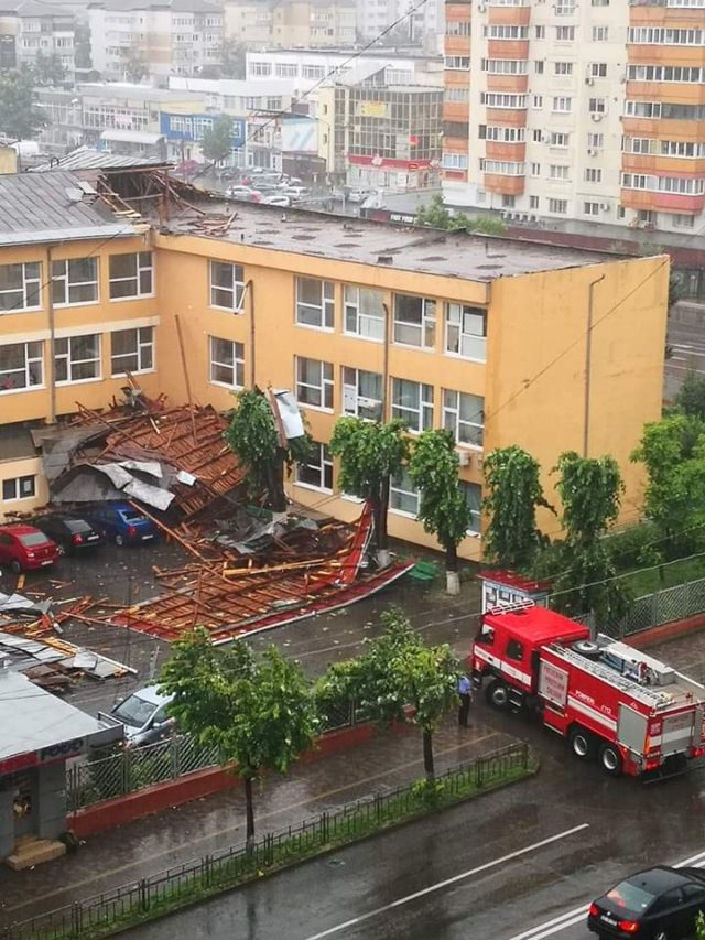 13.02 Două echipaje de pompieri intervin pe străzile Nicolae Bălcescu și 9 Mai din Bacău pentru a degaja elementele de acoperiș desprinse de furtună.