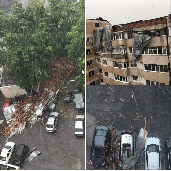 – mun. Bacău, str. Nicolae Bălcescu – acoperiș desprins de pe un bloc de locuințe și căzut pe șapte autoturisme;