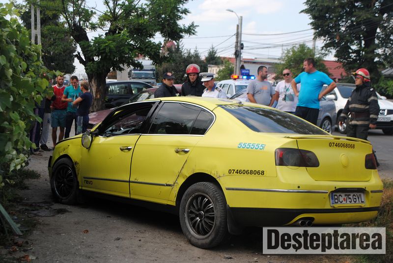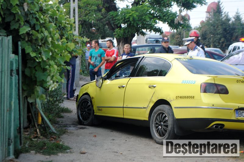Accidentul s-a petrecut in aceasta dupa-amiaza in cartierul bacauan Serbanesti. Masina cu numere de Italia venea, spun martorii, dinspre Letea Veche in momentul in care a intrat in taxi.