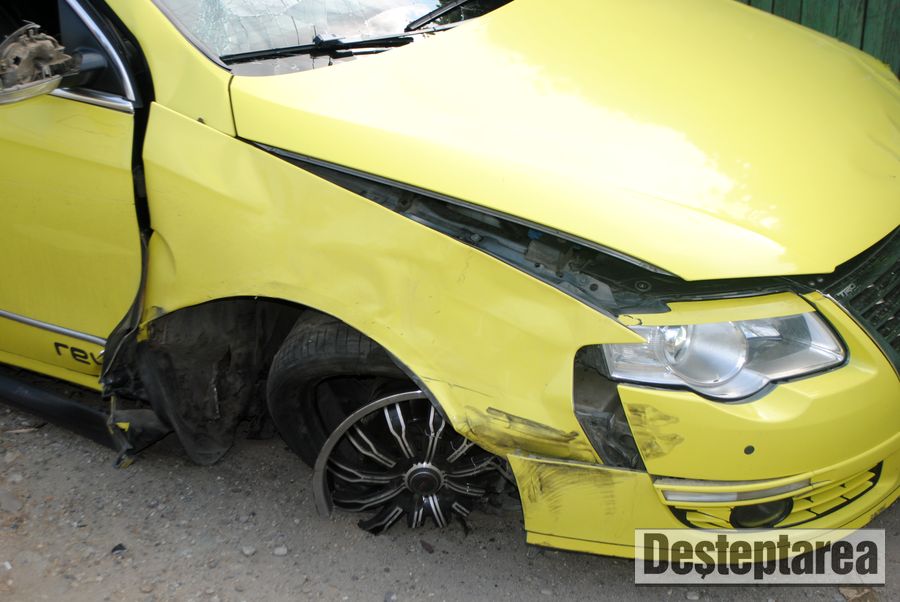 Un autoturism cu numere de Italia a schimbat sensul de mers fara sa semnalizeze si a intrat, azi, in coliziune cu un taxi, aruncandu-l intr-o conducta de gaze.