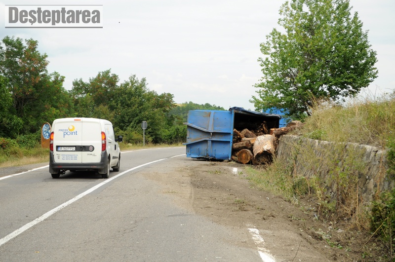 Galerie FOTO: Camion cu lemne rasturnat la Magura
