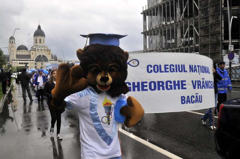 Defilarea elevilor „vranceni” a avut de toate: majorete, mascota, megafon cu muzica de fanfara, baloane albastre, robe, elevi, profesori, vuvuzele, flori, bucurie si… ploaie. Ploaie in rafale. O noua promotie deosebita, cu rezultate foarte bune, plina de entuziasm, dupa cum au spus chiar profesorii care i-au indrumat in tot acest timp. Marsul absolventilor a incântat pe toata lumea, pe tot traseul, de la Statuia Stefan cel Mare pâna la primarie, pentru ca apoi sa se opreasca in fata Parcului Cancicov, unde clipele unice au fost imortalizate in poze.