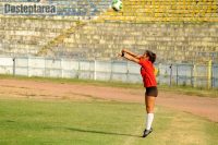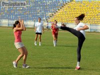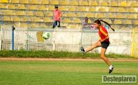 Handbalistele au facut instructie cu fotbalistele pe stadionul „Municipal”, intr-un meci pigmentat cu executii hazlii, dar si cu patru goluri frumoase marcate de Cilici (2), Ciurariu, respectiv Mara Anghel.