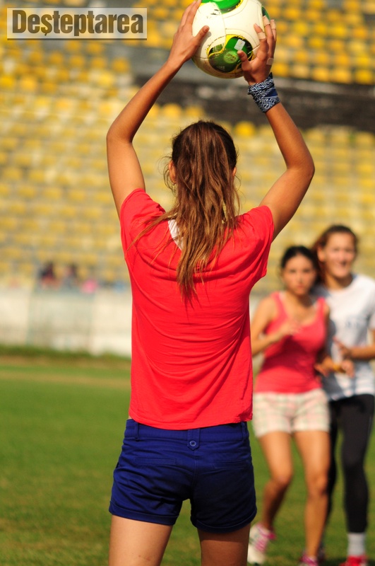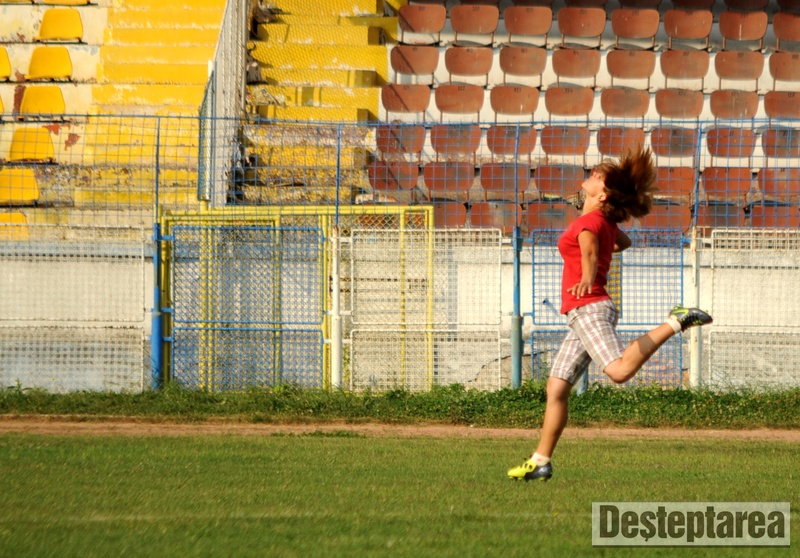 Handbalistele au facut instructie cu fotbalistele pe stadionul „Municipal”, intr-un meci pigmentat cu executii hazlii, dar si cu patru goluri frumoase marcate de Cilici (2), Ciurariu, respectiv Mara Anghel.