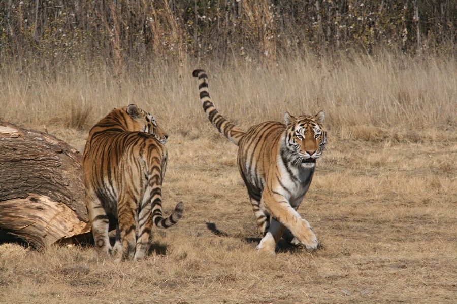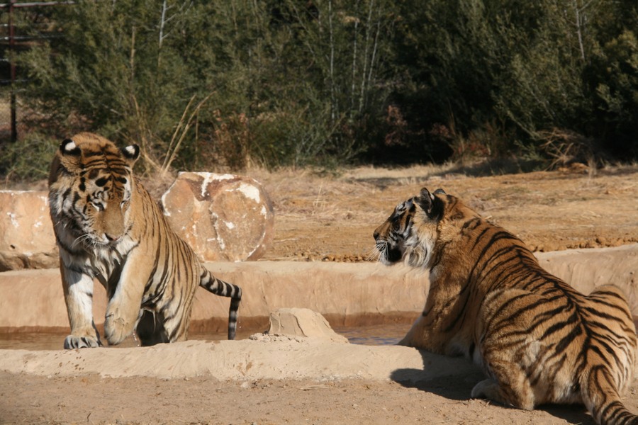 În cele din urmă, tigrii au căpătat îndrăzneală și au început să cerceteze toate elementele de stimulare a comportamentului natural create pentru ei: trunchiuri de copaci pentru cățărat, un adăpost cu platformă la înălțime pentru o priveliște de sus, un bazin mare cu apă și o grotă.