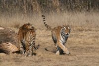 Tigroaica Riwa a fost prima care a inspectat cu mare atenție noile împrejurimi, fiind urmată cu ceva mai multă precauție de partenerul ei, Tomi. La început au avansat câte puțin, întorcându-se înapoi în zona sigură din țarcul de adaptare. Riwa a găsit un tufiș cu ramuri dese, în care i-a făcut mare plăcere să învârtă.