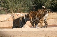 Tomi, mare amator de baie, a descoperit cu încantare bazinul cu apă, în care s-a cufundat rapid. După 2 ore de explorări, tigrii s-au întins pe iarbă, lăsându-se mângâiați de ultimele raze de soare. ”Simți că merită tot efortul atunci când îi vezi cum se bucură de ce e în jurul lor. Echipa noastră a depus eforturi susținute pentru a oferi animalelor acest minunat habitat”, mai spune Hildegard Pirker.
