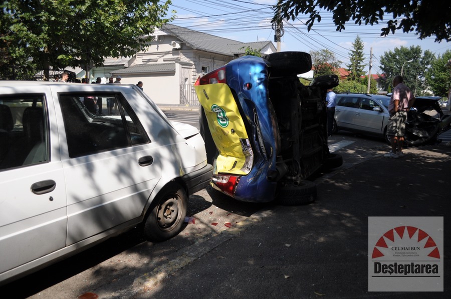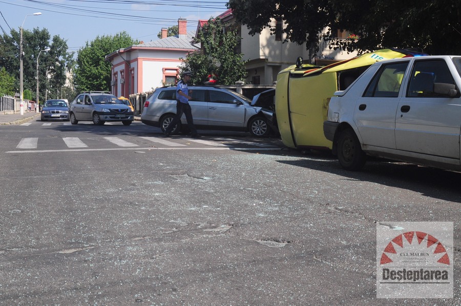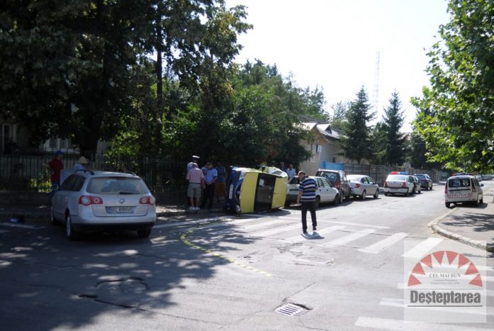 Autoturismul a fost lovit in plin de un Volskwagen care venea cu viteza de pe strada Ion Luca si care nu a acordat prioritate in intersectie.