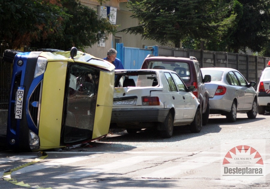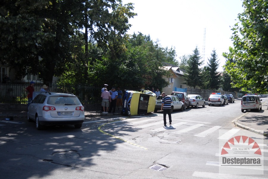 Un taxi in care se aflau mai multe persoane venea pe strada George Bacovia dinspre Centru spre Gara.