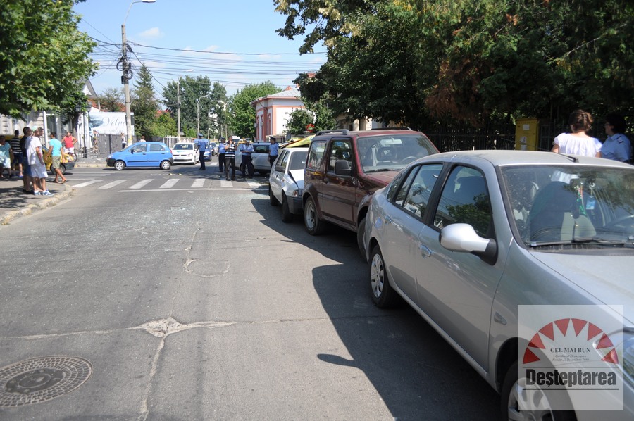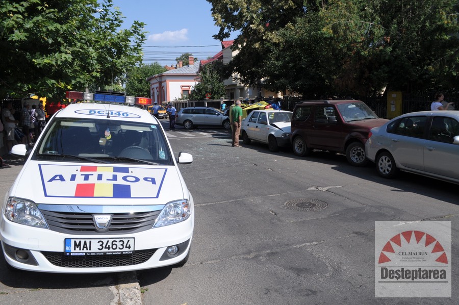 Cinci autoturisme au fost implicate intr-un accident, vineri dupa-amiaza in Bacau, la intersectia strazilor George Bacovia si Pacii.