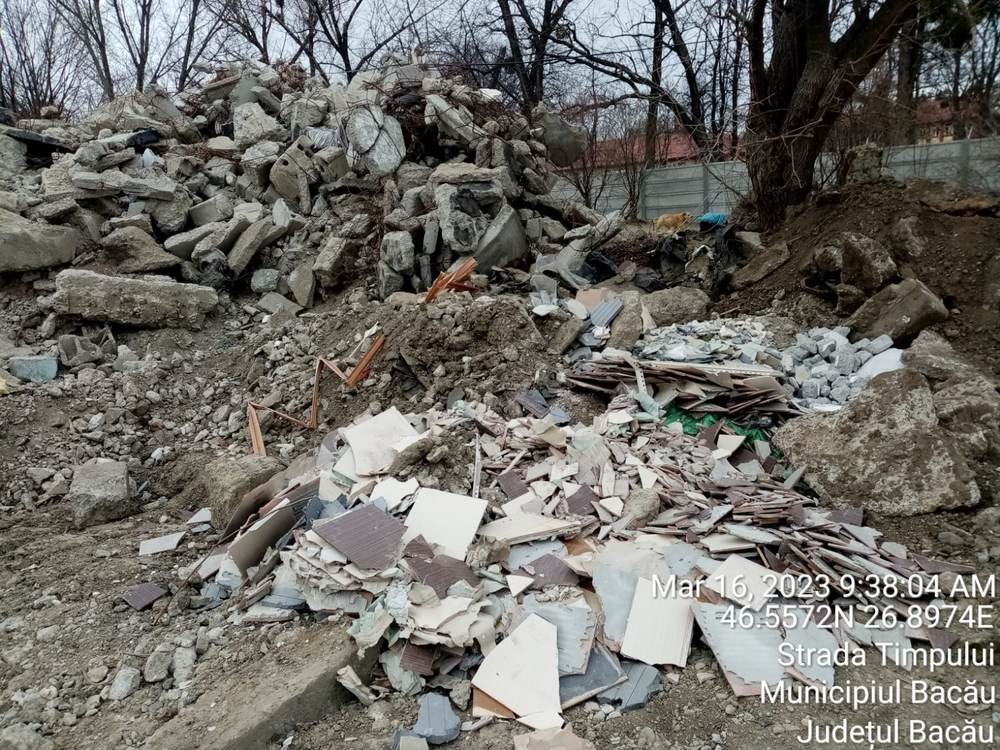 A doua inspecție a avut loc pe raza Municipiului Bacău, în zona Străzii Constanței, unde au fost descoperite depozitări necontrolate de deșeuri industriale rezultate din demolări, pe o suprafață de 1,5 ha.