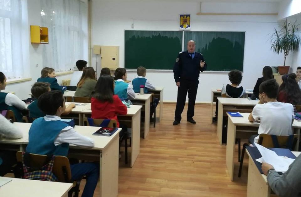Jandarmii băcăuani au ținut ora de dirigenție pentru mai mulți elevi ai Școlii Gimnaziale” Spiru Haret”.