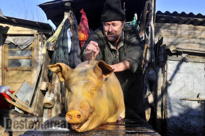 Pentru cei mai multi dintre noi, Craciunul inseamna si mirosul de porc pârlit amestecat cu zgomotele dureroase ale sacrificiului si gustul dulce al „pomanei porcului”, prevestitor al meselor imbelsugate. Oricât ar incerca Europa sa ne convinga de barbarismul sacrificarii porcilor, in satele din toata România acest riual continua sa se desfasoare dupa reguli ce se pierd in negura istoriei. Un adevarat balet se deruleaza in jurul animalului, un dans al fortei si al sângelui greu de suportat pentru cei slabi de inger.