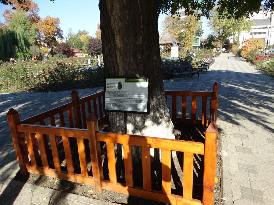 În vară, în luna iulie, scriam despre celebrul copac Ginkgo Biloba din parcul Trandafirilor, care a rămas fără gard și fără pancarda pe care erau trecute diverse informații despre acest arbore. La vremea respectivă am avut asigurări de la Direcția de Spații Publice (D.S.P.) că totul va fi înlocuit, lucru care s-a și întâmplat de curând.