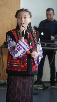 Înainte de mult aşteptatul moment, am cerut îngăduinţa de a arăta o carte-document: „Poezii şi proză”, de Agatha Grigorescu-Bacovia (cu o dedicaţie din 1967 către Radu Cârneci, „poet al iubirii”) şi a citi doar primele două versuri din poezia „Amanţii mei”, publicată în 1923: „Amanţii mei/ Sânt cărţile-nţelepte”. Artiştii gioseneni au însemnat formaţii de dansatori de la 6 la 14 ani (adică debutanţii, care s-a descurcat admirabil), alături de profesionişti (şase perechi, aflate în elementul lor, cu revărsare de energie şi bună dispoziţie), solişti de muzică populară şi, din partea invitaţilor, Rareş Drăghici, care a oferit trei cântece. Îi vom revedea în vară, la Festivalul Judeţean de Folclor de la Slănic-Moldova. Un detaliu important: dansurile populare ale celor mici au fost însoţite de strigături, multe spontane, lansate de „muncitoarele” care au lăsat deoparte pentru aceasta furca, vârtelniţa, cheptănuşii, depănătoarea etc. Laude merită şi cei ce i-au pregătit: Robert Costrovanu (care conduce aici o clasă externă a Şcolii Populare de Arte şi Meserii Bacău), împreună cu adjuncţii săi, directoarea Şcolii, educatoarele, învăţătorii şi profesorii, ba chiar şi părinţii elevilor, aflaţi în vacanţă.