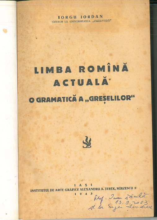 Sunt cunoscute înţelesurile derivate ale termenului, cu pătrundere în domenii ale creaţiei umane (gramatica culorilor, de pildă), dar în secolele trecute avea şi sensul apropiat de legile gândirii. Când Iorgu Iordan a scris lucrarea fundamentală (la care a lucrat zece ani) „Limba română actuală – o gramatică a «greşelilor»” (1943), a avut în atenţie „descrierea şi explicarea inovaţiilor, adică a abaterilor de la uzul tradiţional” pe care le cunoaşte limba română. Profesorul de la Universitatea „Cuza-Vodă” (nume pe care l-a cunoscut între 1942 şi 1948 cea mai veche instituţie de învăţământ superior de la noi) din Iaşi a avut în vedere clasicele secţiuni ale oricărei limbi: fonetica, vocabularul, morfologia, sintaxa şi stilistica.