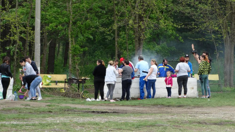 Undeva, lângă un alt grătar amenajat de municipalitate, era un grup de tineri, foarte concentrați. Un val de ploaie tocmai își făcea simțită prezența. La o masă de joc concentrarea era atât de mare că nu s-a făcut niciun gest. Doar în zona de grătare s-au deschis câteva umbrele.