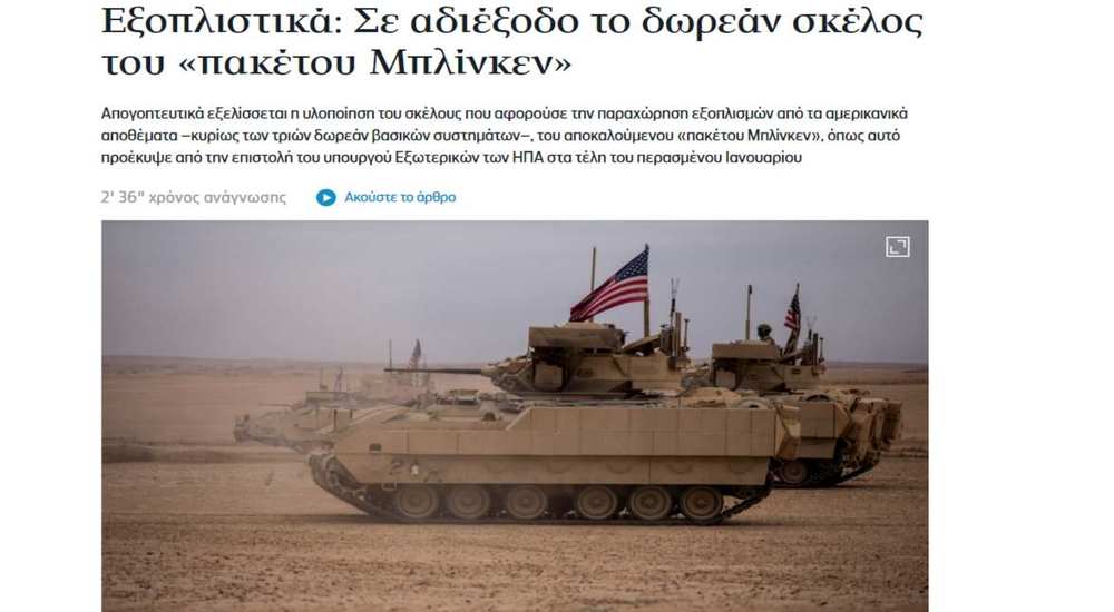 Implementarea pachetului „Blinken”, care includea trei sisteme militare americane oferite gratuit, a întâmpinat dificultăți semnificative, ducând la un blocaj dezamăgitor. Acest pachet, prezentat inițial la sfârșitul lunii ianuarie anul trecut, nu și-a atins scopurile preconizate, în mare parte datorită cerințelor logistice și financiare asociate, scrie presa elenă.