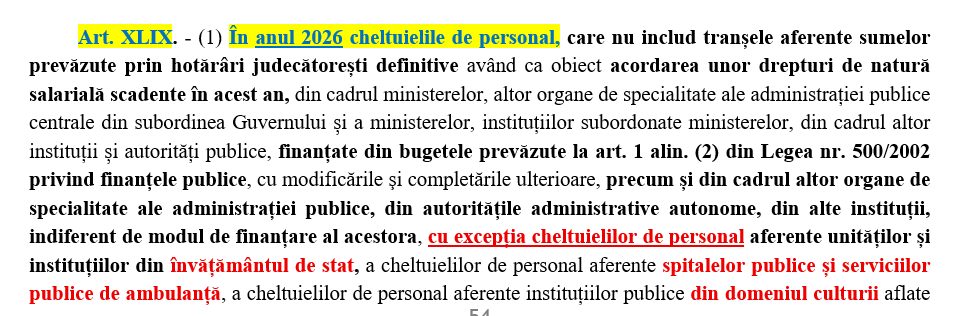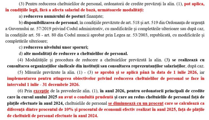 Proiectul mai prevede și o excepție pentru instituțiile care au redus deja cheltuielile de personal în 2025, caz în care reducerea pentru 2026 va fi calculată diferențiat.