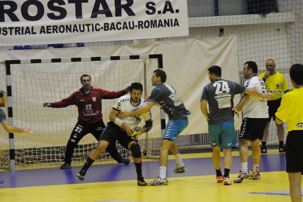 Studentii au inceput cu dreptul jocul de sâmbata, conducând ostilitatile in prima repriza, care a inregistrat putine momente de echilibru pe tabela. Conduse cu trei goluri in minutul 8, gazdele au egalat cinci minute mai târziu (8-8), insa totul s-a dovedit doar un foc de paie din partea lui Mitrea si Cântec. Forta ofenisiva a bacauanilor si-a facut din nou simtita prezenta, iar Stiinta a intrat la pauza cu un avantaj de cinci goluri: 20-15.