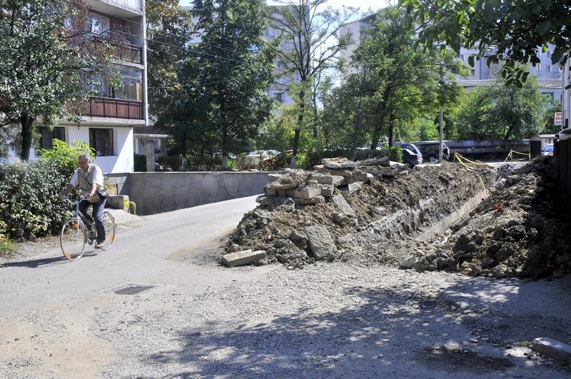L-am rugat insistent pe om sa ne spuna cum il cheama. Cu chiu, cu vai, a spus ca se numeste Ion Moraru si ca munceste undeva in zona la placat un apartament cu polistiren. La poza n-a vrut sa stea, sa nu-l vada cunoscutii. De problema aceasta, cu readucerea locului unde s-a sapat la forma initiala s-au plâns mai multi oameni. Eram in curte la Centrul „Daniel” când o doamna a spus ca cei care lucreaza acolo le-au distrus gradinile si aleile si ca le-au lasat asa. Iar santurile inainteaza, acapareaza tot mai mult spatiu, fie ca e strada, fie ca e spatiu verde.