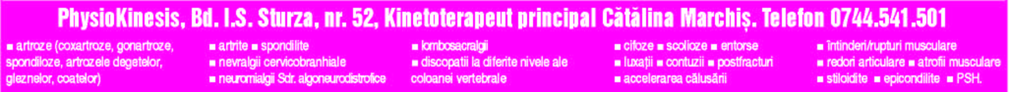 Avem grijă de postură! Majoritatea adulților cu dureri de spate prezintă o deviere a coloanei vertebrale, apărută cu siguranță în copilărie sau pubertate. O cifoză, o scolioză sau o ștergere a curburilor fiziologice înseamnă dureri de spate. De aceea, pentru a preveni problemele viitorului adult, recomandăm o evaluare posturală globală începând cu vârsta de 7-8 ani.