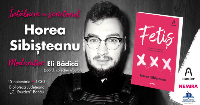 Născut la 6 ianuarie 1987, în Bacău, Horea Sibişteanu revine în oraşul natal nu din postura fiului rătăcitor, ci din ipostaza prozatorului care a reuşit să se remarce prin colaborările la câteva dintre publicaţiile trendy ale ultimilor ani, dar mai ales prin debutul editorial, „A şaptea viaţă” (2004), şi prin colaborarea la volumul colectiv „Scrisori din Cipangu. Povestiri japoneze de autori români” (2016).