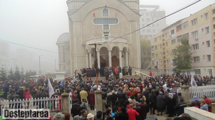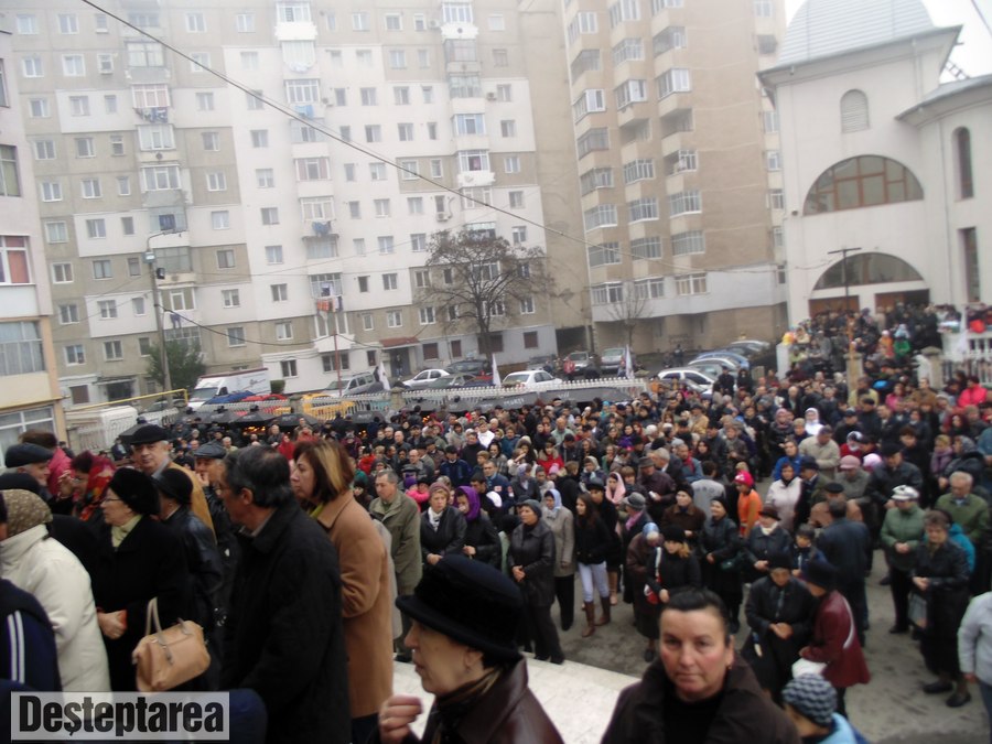A urmat parintele paroh al bisericii Sf. Dumitru, Ioan Plescau, care le-a vorbit enoriasilor despre amenintarile care vin din partea celor care deja “ne-au luat pamânturile si acum vor sa ne ia credinta”.
