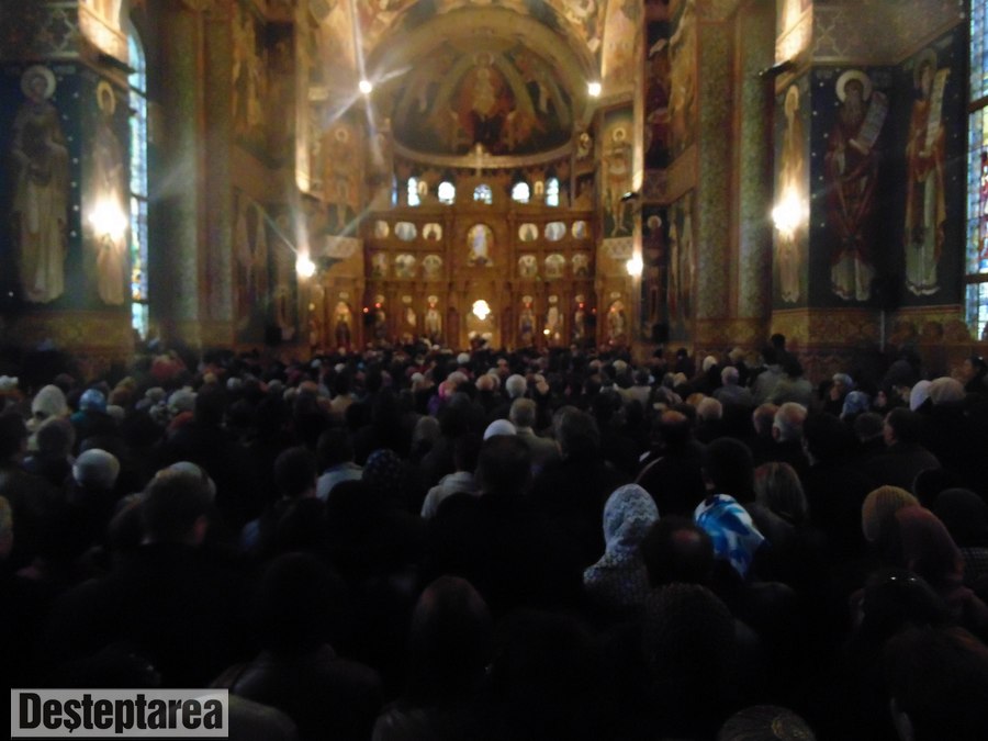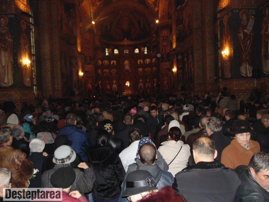 Cu mic cu mare, enoriasii de toate vârstele si conditiile sociale, de la batrâni urcând alene scarile de marmura ale bisericii sprijiniti in bastoane si cu lumânari ori crengute de busuioc in mâini, pâna la copile de-o schioapa tragând de mâna taticii patrunsi de sentimentul unic al unei astfel de sarbatori, cu totii au facut un zid uman din trupuri, umplând pâna la refuz edificiul bisericesc si curtea deopotriva. Pe alocuri, zareai uniformele albastre ale jandarmilor care pareau ca au fraternizat cu poporul, uitând pentru câteva clipe de misiunea pentru care au fost trimisi de comandantii lor.