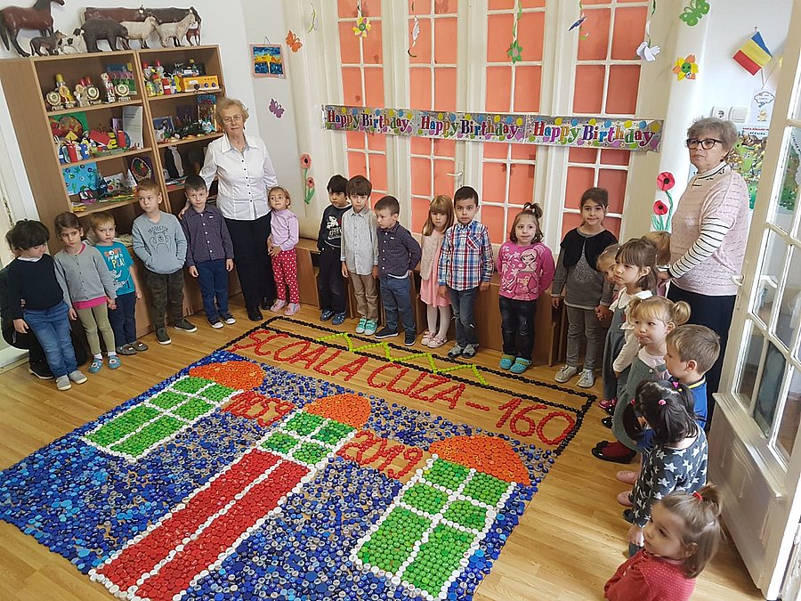 Preșcolarii Eco-Grădiniței cu Program Normal Nr. 26 din Bacău, coordonați de educatoarele Iustina Boambă și Linica Tapalagă, au marcat Zilele Școlii Gimnaziale „Alexandru Ioan Cuza”, la împlinirea a 160 de ani de la înființarea ei, prin realizarea unui mozaic din capace de PET-uri în care este reprezentată simbolic clădirea școlii și evenimentul sărbătorit, #cuza160.