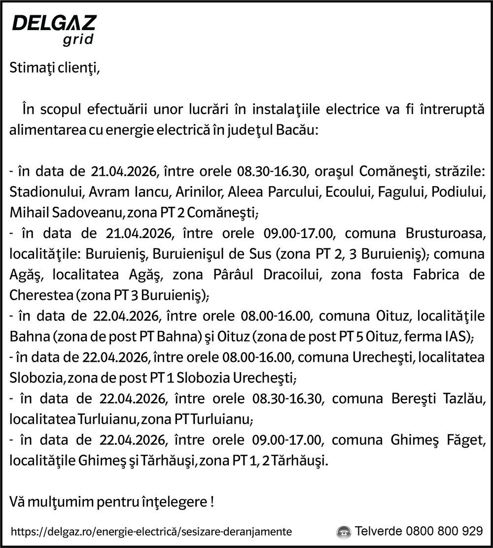 Memoria Imagini cu noi cartiere de locuințe, magazine, parcuri, grădinițe și creșe din Onești. Producător: © 1961 Studioul Cinematografic „Alexandru Sahia” Deșteptarea 11 martie 2024 Acțiune FacebookXWhatsAppTelegramVK Articolul precedentDe ce o duce prost turismul băcăuanArticolul următorJudecătoria Podu Turcului rămâne cu un singur judecător Alte titluri O tragedie, trei agresori și o societate indiferentă – ancheta socială din Steagul Roșu (1970) Bacăul în semiîntuneric: dezbaterea din 1971 despre firmele luminoase și imaginea orașului Refuzuri de marfă la fabrica „Partizanul” din Bacău – o analiză publicată în „Steagul Roșu” (9 martie 1968) Abonați-vă la canalul Telegram Deșteptarea pentru știri necenzurate de "standardele comunității" ULTIMELE ȘTIRI A încurcat bagajele la Aeroport și a pierdut rucsacul cu 6.000... Actualitate 15 aprilie 2026 eurobasgaz-15aprilie 15 aprilie 2026 bagaje 15 aprilie 2026 Șofer prins cu 139 km/h în localitatea Sascut, pe DN2-E85 Actualitate 15 aprilie 2026 viteza 15 aprilie 2026
