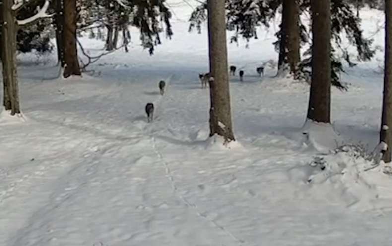 În pădurea ce aparține Ocolului Silvic Mănăstirea Cașin, din cadrul Direcției Silvice Bacău, au fost surprinse imagini spectaculoase cu o haită de lupi în timp ce își străbătea teritoriul.