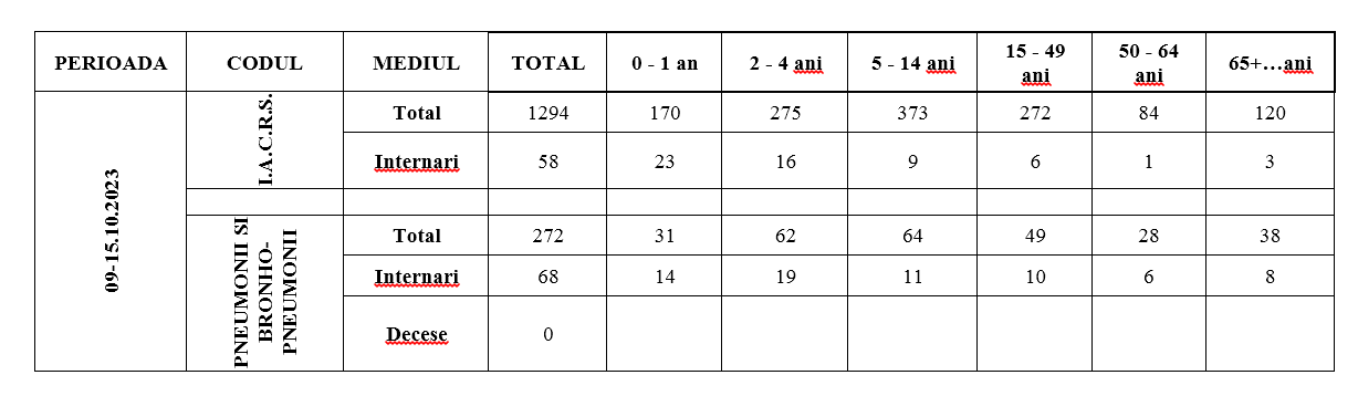 De asemenea, s-au înregistrat 272 de cazuri de pneumonii și bronhopneumonii în aceeași perioadă.
