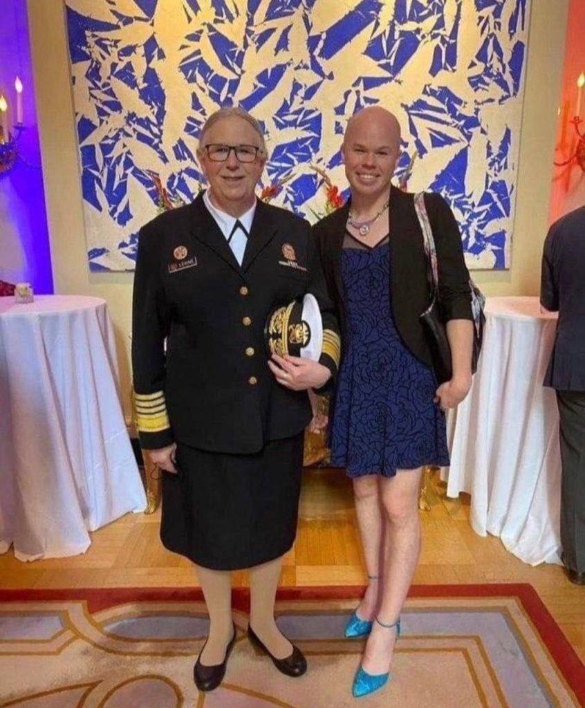 Transgender amiralul american Rachel Levin și  secretarul adjunct al energiei  nucleare Sam Brindon, la Ambasada Franței, la o recepție de Ziua Bastiliei. Sursa;  https://www.el.gr/nea-taxh/atzenta-2030/paremvasi-kolafos-tis-zacharova-gia-to/