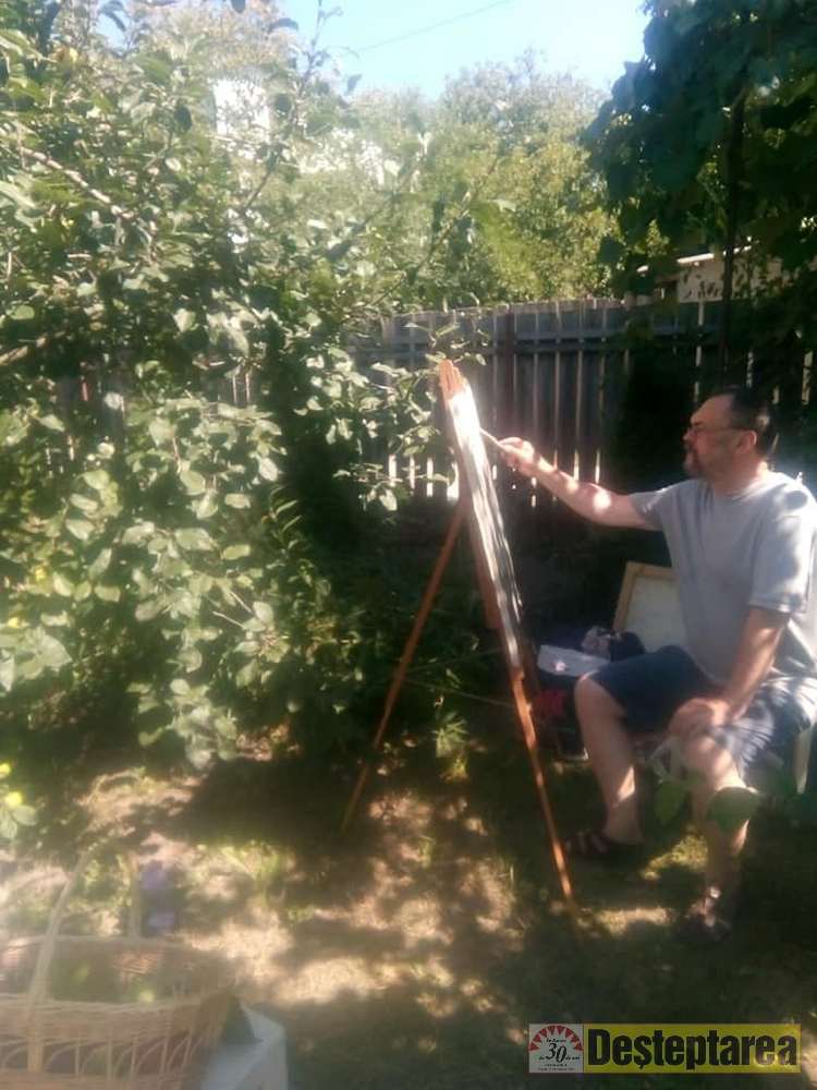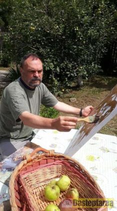 Pictorul Alexandru Andronache, un artist pentru care natura statică şi peisajul reprezintă pilonii propriei creaţii, s-a apropiat de Stănişeşti în felul său aparte, printr-o serie de compoziții în ulei pe pânză, inspirate din atmosfera locului. A pictat peisaje pline de farmec realizate în plein air, pe dealurile molcome şi prin crângurile aşezării natale a lui George Apostu iar în atelierul impovizat la faţa locului şi-a alcătuit compoziții cu naturi statice, în care a inclus artefacte tradiţionale, fructe şi flori – ca sugestie a universului rural în care-şi are rădăcinile sculptorului omagiat –, compoziţii pe care apoi le-a pictat cu o emoţionantă înţelegere faţă de natura şi de spiritul obiectelor selectate şi chemate să interrelaţioneze. Foiţa de aur, în cazul a două dintre lucrări, le sporește farmecul şi preţiozitatea. Ca şi în ediţia 2018, când pictura Luciei Juncu s-a integrat în grădina cu sculpturi a casei lui George Apostu, în 2019, lucrările lui Alexandru Andronache au alcătuit un contrapunct bidimensional pentru amplele compoziții, în trei dimensiuni, de la Stănişeşti.