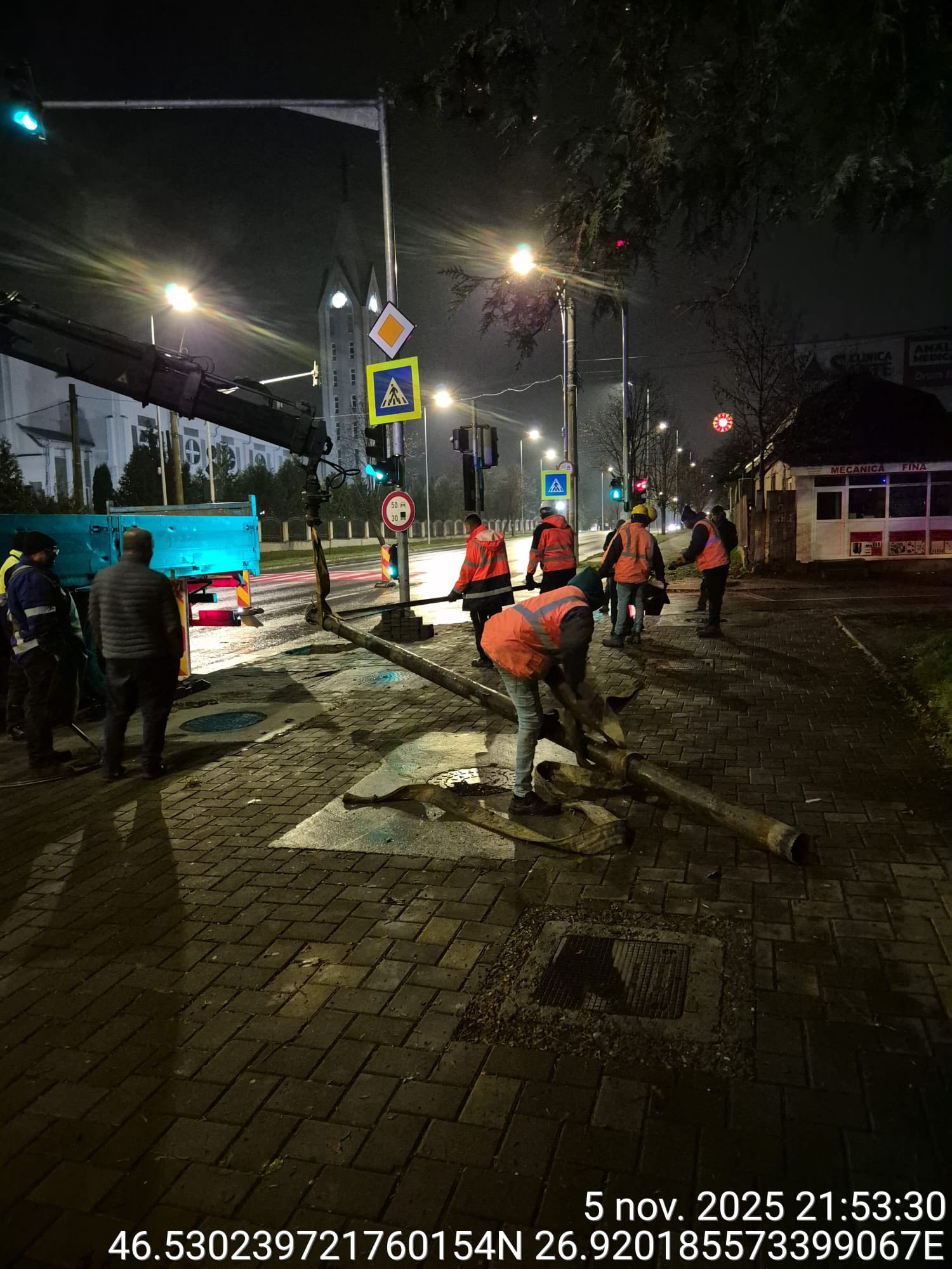 În această seară, echipele Primăriei Bacău au demarat lucrările de dezafectare a vechilor stâlpi de semafor, în intersecțiile unde noile sisteme de semaforizare au fost deja puse în funcțiune.