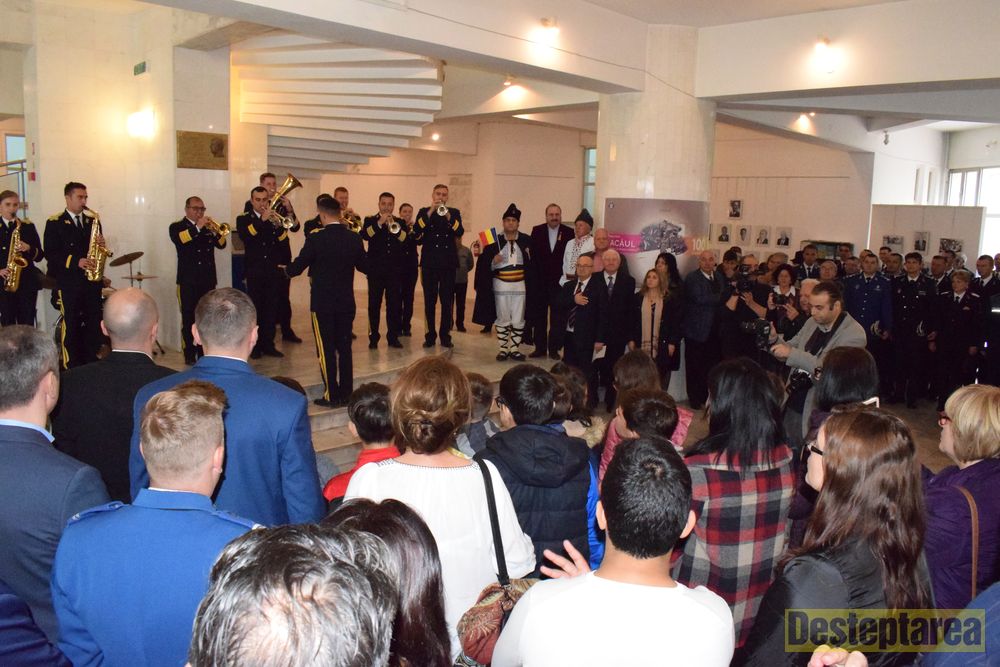 Lucrările simpozionului au fost deschise precedate de vernisajul Expoziției „Marea Unire în documente și simboluri”, prezentată de dr. Anton Coşa, de la Complexul Muzeal „Iulian Antonescu”. În expoziție, Vilică Munteanu, pasionat colecționar medalist, a prezentat o bună parte din exponatele sale. De asemenea, o gardă de onoare formată din membri ai Asociației Tradiții Militare Românești „Regimeul 3 Artilerie, comandată de col. (r) Stelian Cojocaru, a etalat uniforme purtate de militari români în Primul Război Mondial, inclusiv a unui pilot de avion precum a celui care a întreprins în 1918 Zborul Marii Uniri Bacău-Blaj.