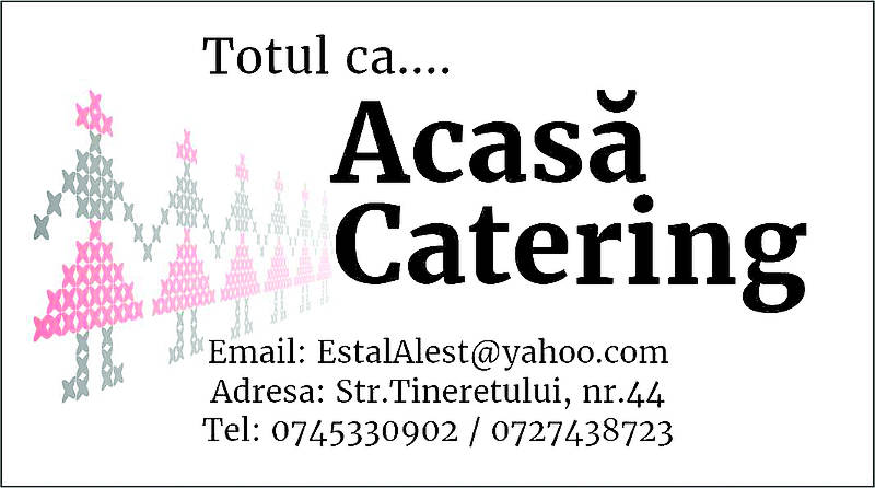 „Pentru a vă asigura că evenimentul va fi pregătit în detaliu, de la personal profesionist, la preparate care să îi surprindă pe participanți prin gust și aspect, alegeți Acasă Catering. Echipa noastră va fi partenerul tău în care poți avea încredere în orice moment, înlăturând povara, având în vedere chiar și cele mai mici detalii”, precizează echipa Acasă Catering.