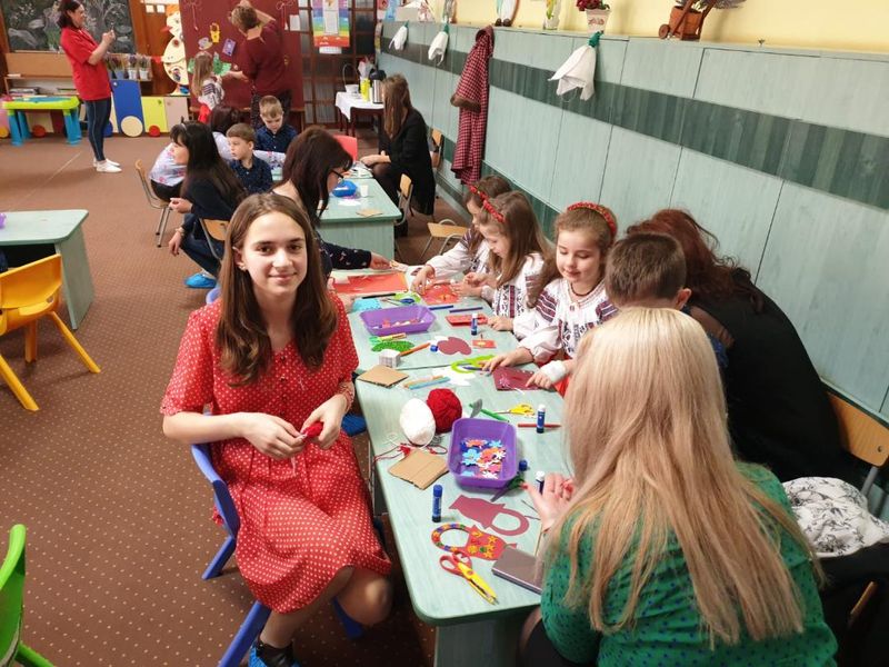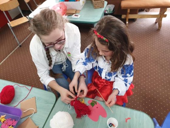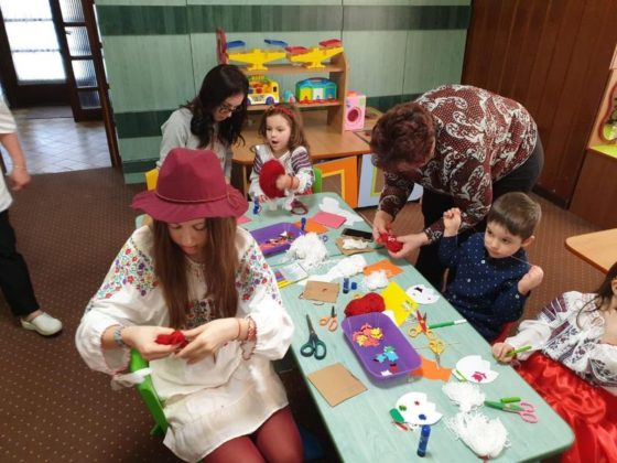 Un grup de elevi de la Colegiul Naţional “Ferdinand I”, Bacău, îndrumat de doamna Nicoleta Zărnescu, director adjunct , a participat cu multă determinare alături de preşcolari la confecţionarea mărţişoarelor, la pregătirea dulciurilor.