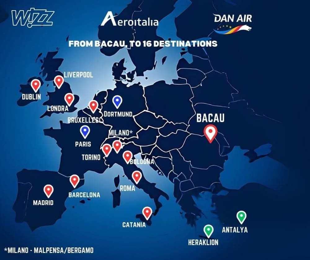 -Revenind la traficul de pasageri, spre câte destinații se zboară acum din Bacău?