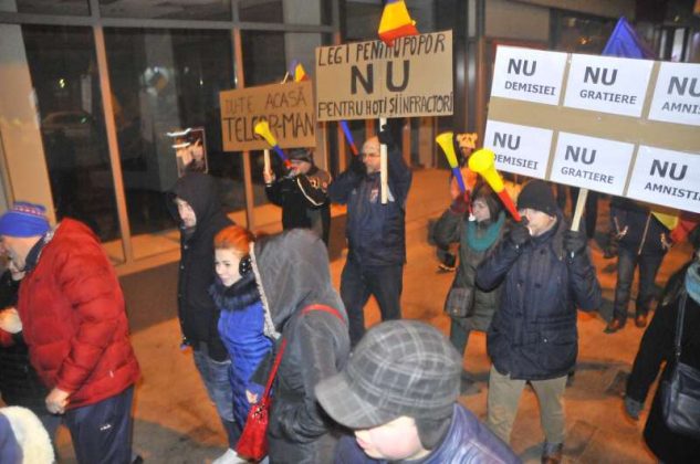 Băcăuanii au ieşit în număr mare şi în seara zilei de joi, 2 februarie, ca să-şi strige supărarea. Ei s-au adunat la început în piaţeta din faţa Palatului Administrativ unde scandau împotriva celor aflaţi la guvernare şi a ordonanţei prin care se modifică prevederi din Codul Penal şi Codul de Procedură Penală.