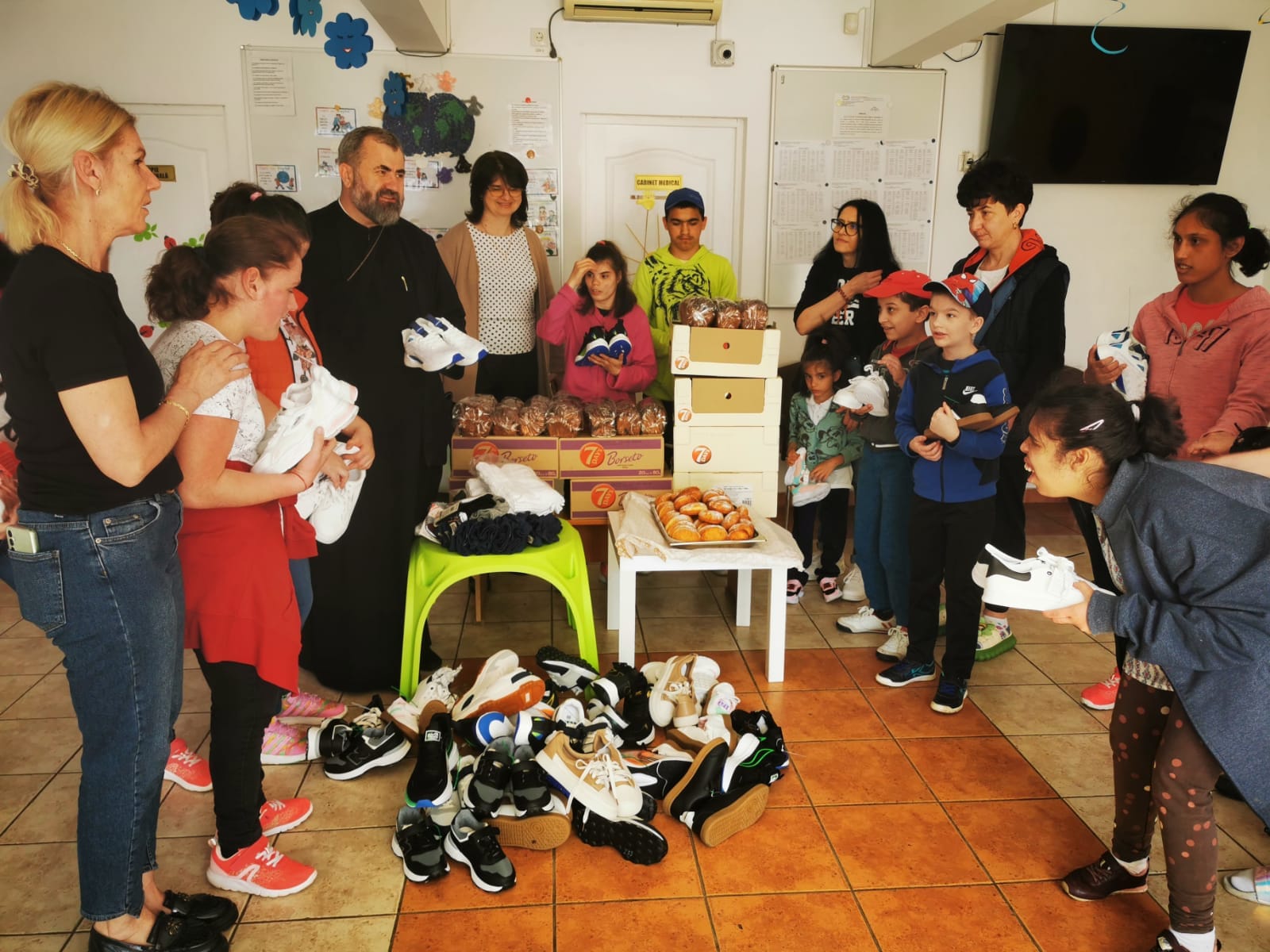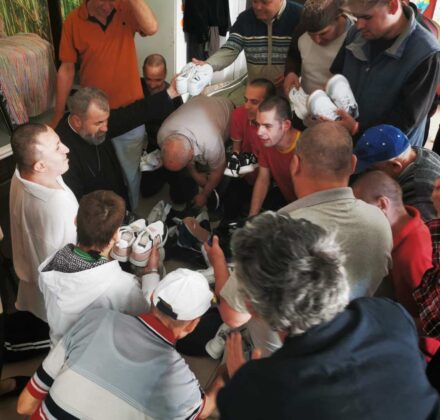 „Lunile acestea – a mai precizat părintele -, știind totuși că prioritatea noastră este să îi hrănim pe cei mulți și flămânzi, aproape renunțaserăm la încetățenitul obicei creștin al «spălării picioarelor» și la încălțatul copilașilor din centrele rezidențiale în Sfânta Zi de Joi Mari!